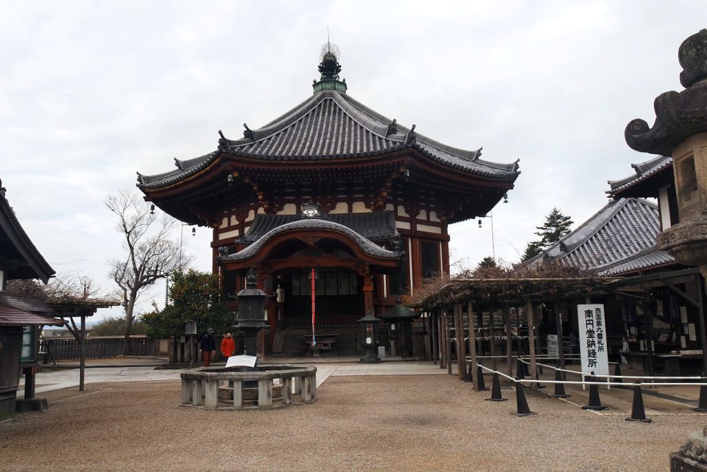 治承4(1180)年の平重衡の南都焼討ちによって焼失した堂塔は、鎌倉時代に復興を遂げますが、その後、享保2年(1717)の火災によって、伽藍の西半分を失いました。境内には光明皇后創建とされる五重塔(室町時代再建・国宝)、北円堂(鎌倉時代再建・国宝)の国宝建築物をはじめ、南円堂(江戸時代再建・重要文化財)、国宝館などが立っている法相宗の大本山。また多くの仏教彫刻の名品を所蔵しています。(世界遺産)