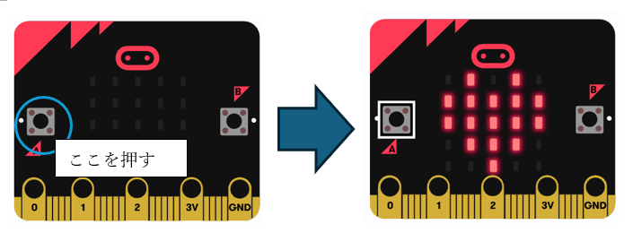 Aボタンを押すと、LEDが点灯するようにするには