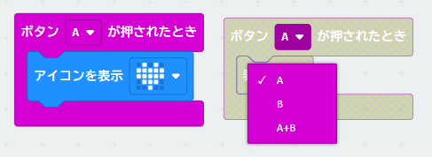 「Aボタンを押したら」というパーツは「入力」の中にあります。これをプログラムエリアにマウスで動かします。